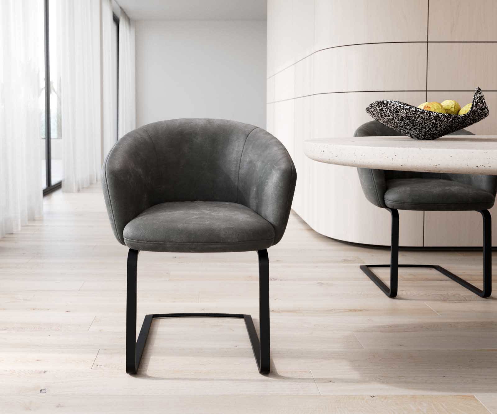 Esszimmerstuhl Caja mit Armlehnen Echt-Leder Schwarz - Stuhlsystem von DELIFE