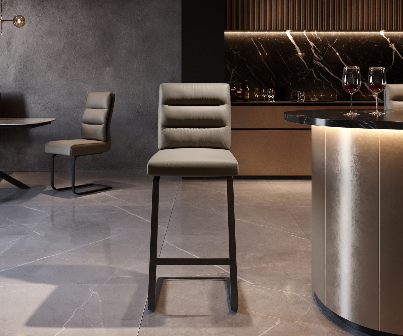 Die optimale Sitzhöhe von Barhockern liegt bei ungefähr 110 Zentimetern. Der Abstand zwischen Sitzfläche und Oberkante des Tresens sollte im Idealfall zwischen 30 und 35 Zentimeter betragen. Zwischen den Thekenstühlen ist ein Mindestabstand von zehn Zentimetern empfehlenswert, damit sich niemand eingeengt fühlt. Höhenverstellbare Thekenstühle sind oftmals nicht ganz so standfest wie Barstühle auf Beinen. Die Sitzschalen sind je nach Modell gepolstert oder aus Kunststoff. Die Bezüge können aus Velours, Samt, Leder oder Mikrofaser bestehen. Barhocker mit Standfuß und nur einem Bein, dem sogenannten Tellerfuß, haben eine größere Standfläche als die klassischen Varianten auf vier Beinen und den Vorteil, dass sie keine weiteren Stolperfallen erschaffen, was dem Trubel an einer Theke dienlich ist. Die Rückenlehne erhöht den Sitzkomfort, benötigt aber auch mehr Platz. Barhocker ohne Lehne sind dagegen bei kleinen Küchen ideal.